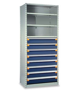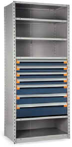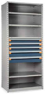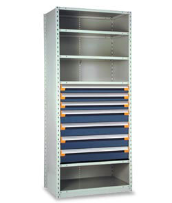 4" drawers @ 30 compartments/ea (4)ea - 6" drawers @ 12 compartments/ea (1)ea - 8" drawers @ 12 compartments/ea |